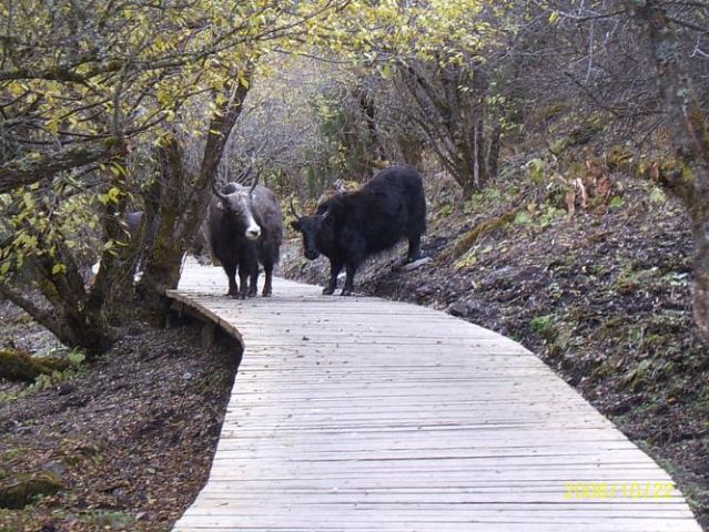 在长坪沟走栈道的时候,试图跟我们收买路钱的牦牛: