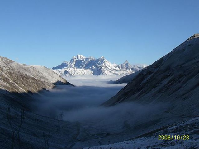 本来晓东一句“去九寨沟有个最大的坏处就是,以后你到哪儿看水,都没啥意思了”,让我差点就投奔九寨沟了,可惜一来是最紧张的季节,机票酒店都不好办,并且行程往返四天,担心外出的时间太长,误了手头的活儿。于是就四姑娘山了。 这趟出行,看到最漂亮的景之一,是返程车过巴朗山四千米左右时,雪山遥遥,云海却仿佛在身边缭绕,一车人赞叹不已,请司机师父停了车,纷纷留影。
