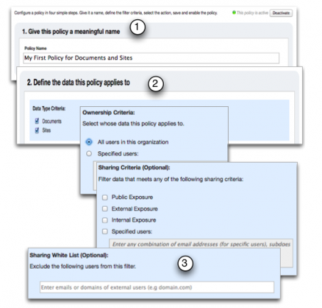 CloudLock的主要产品是为云服务(如Google app、Salesforce)提供额外的安全、防泄密、合规性管理能力的「Collaboration Security」,功能大致包括:
